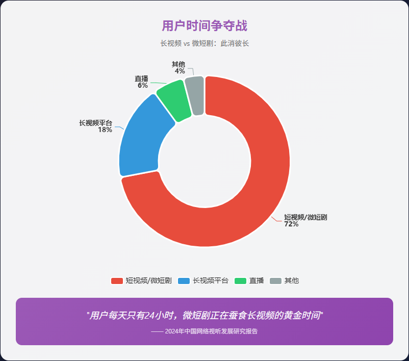 行业也在塌方。长视频在全网用户时长中的占比,从2023年的17.8%跌到2025年的11.3%。微短剧人均单日使用时长达到129分钟,正式超过长视频。